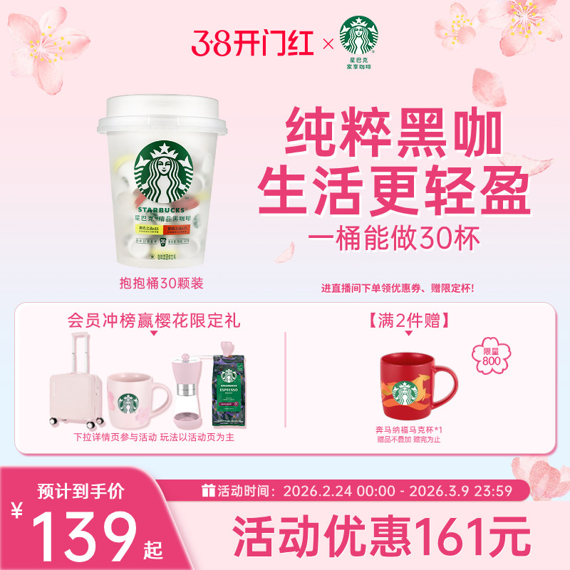 【38开门红】星巴克速溶咖啡冻干黑咖啡美式咖啡粉抱抱桶囤货装