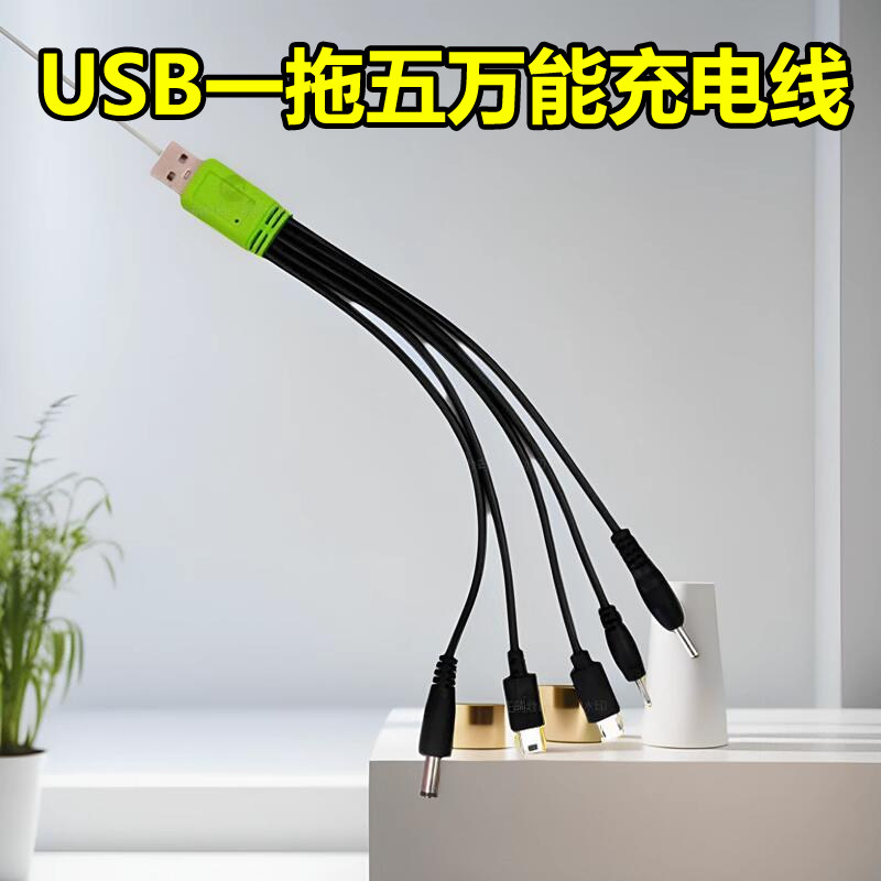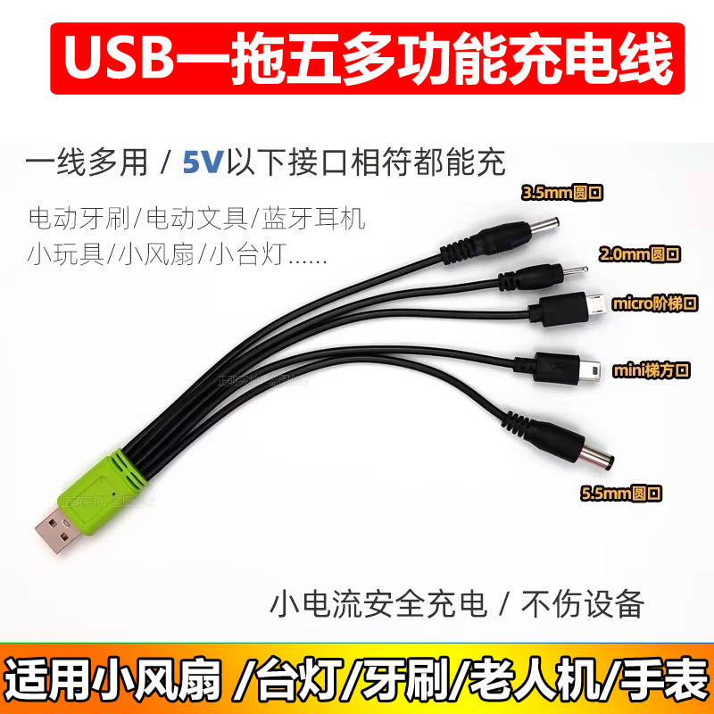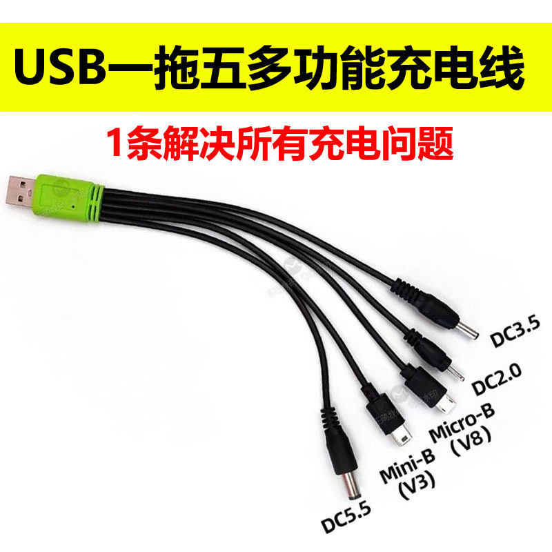 DC5V圆孔充电线老人机通用诺基亚多功能一拖五充电线多功能大孔