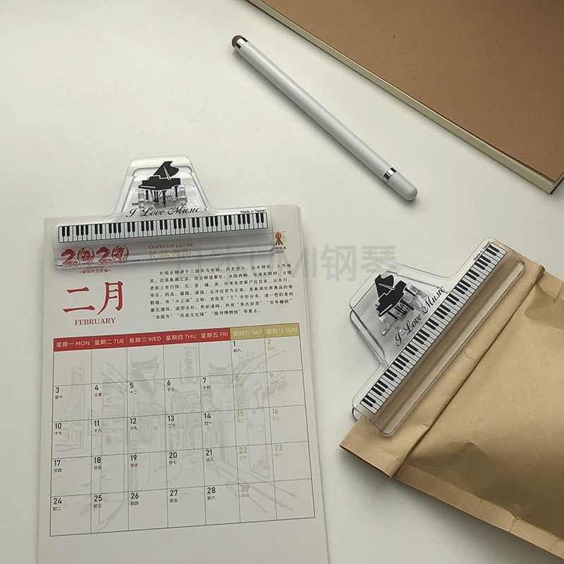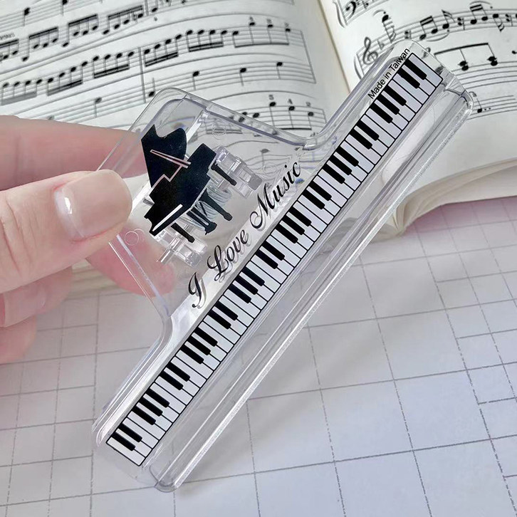 台湾透明乐谱夹子手账夹钢琴音符图案水晶长尾文具创意音乐礼物