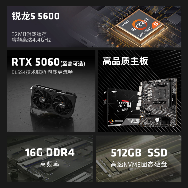 【12期免息+国补】AMD锐龙R5 5600/RX6500xt/7650GR显卡3A电竞游戏主机直播LOL吃鸡台式DIY组装机电脑套件