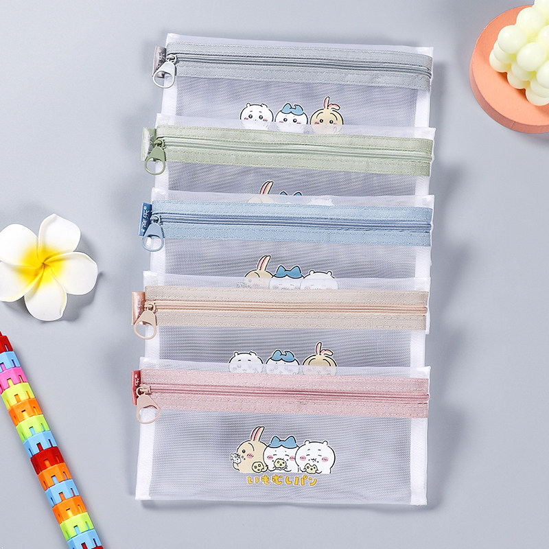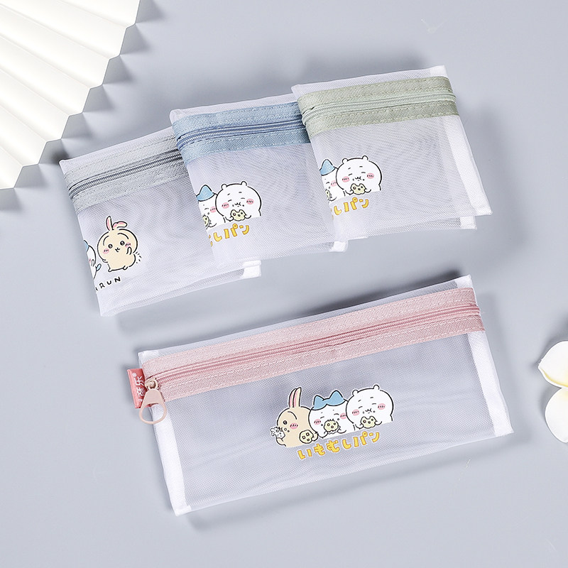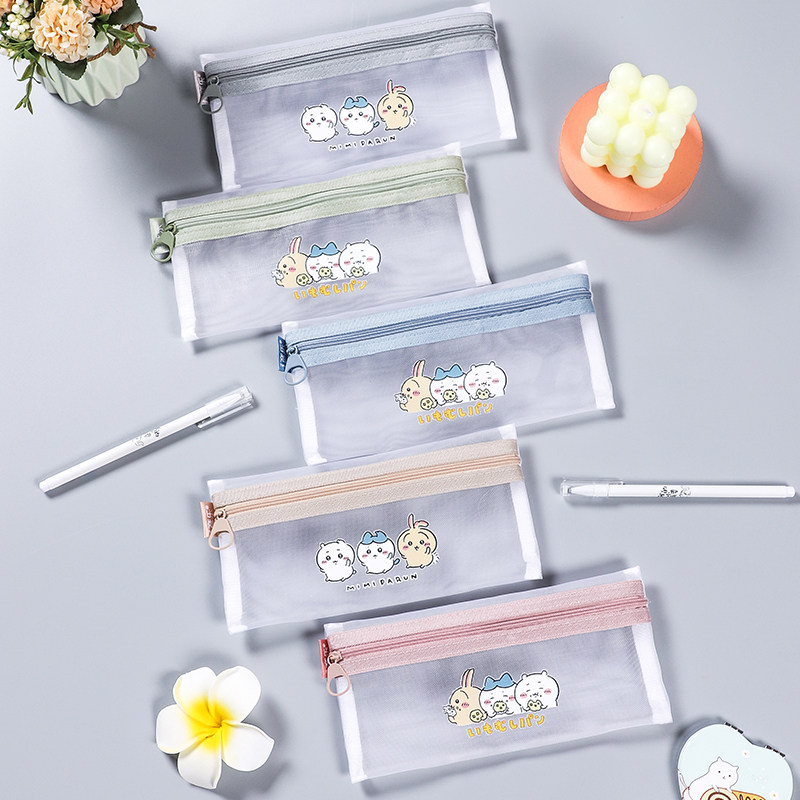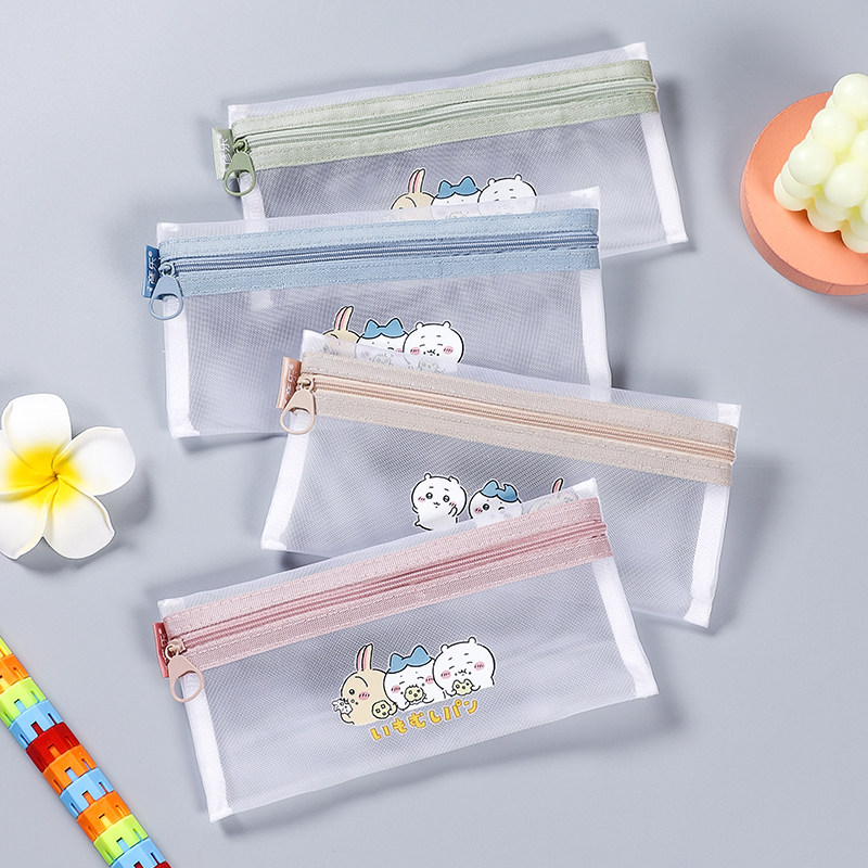 彦乐吉伊卡哇网纱透明拉链笔袋大容量小学生考试专用文具收纳袋女