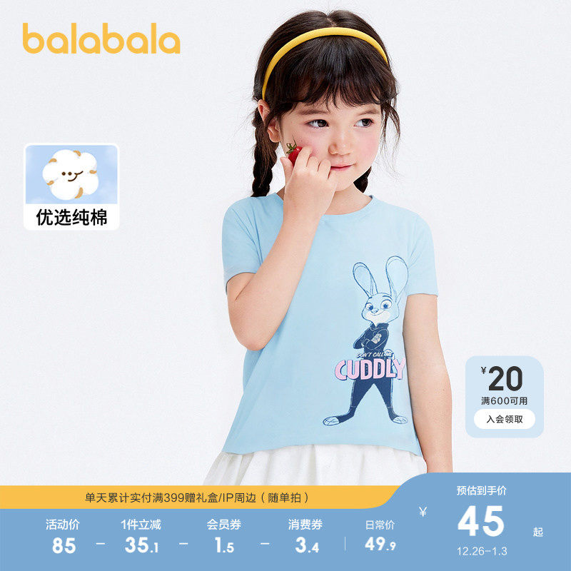 【迪士尼IP】巴拉巴拉童装儿童短袖t恤女童夏装纯棉上衣