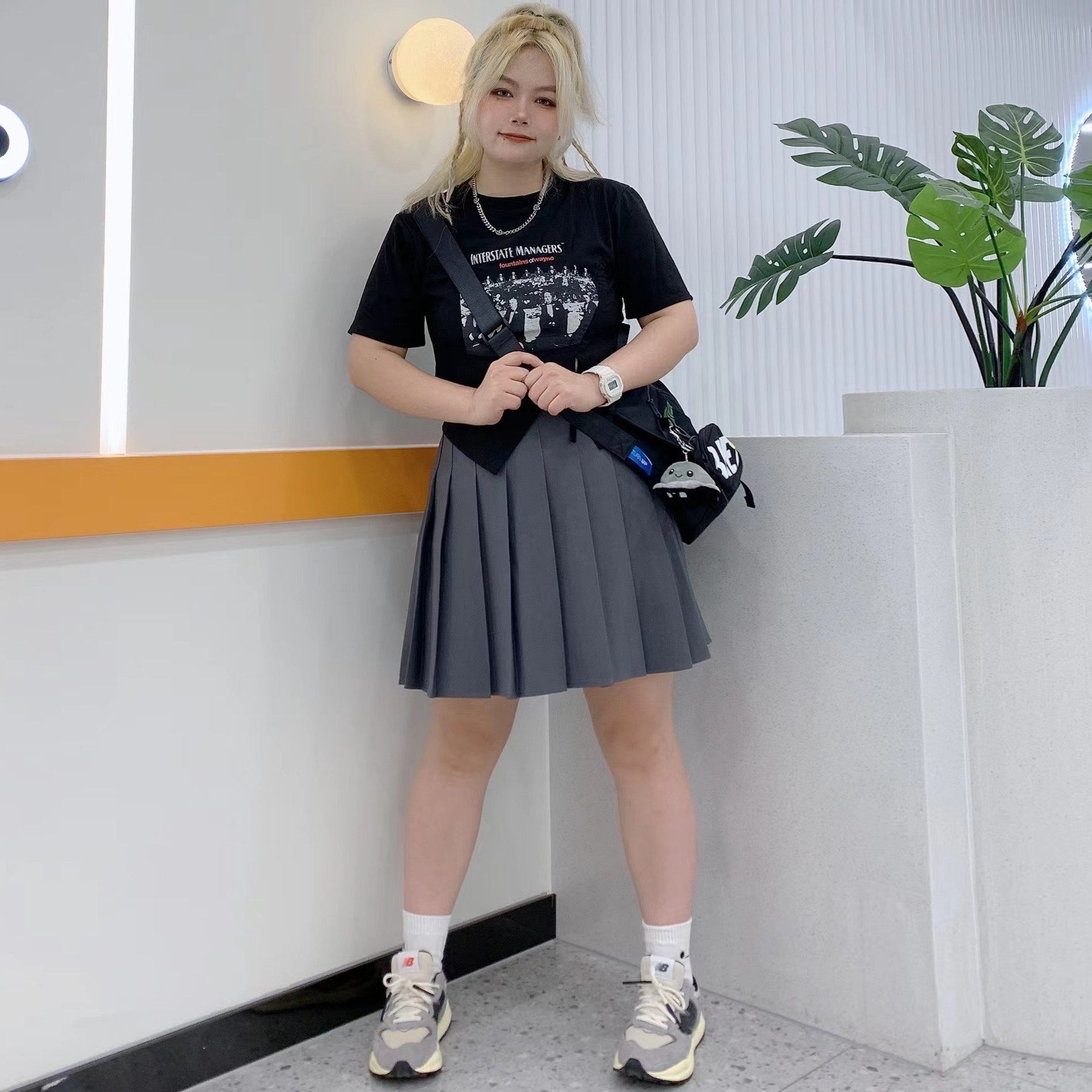百褶裙女小个子夏季新款高腰显瘦半身裙纯色大码学院风jk短裙套装