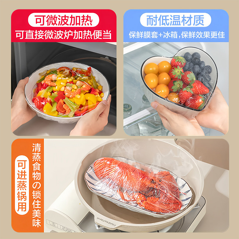 一次性保鲜膜套罩食品级家用厨房pe保鲜袋浴帽式带松紧口碗盖剩菜
