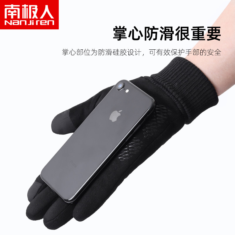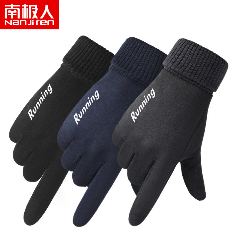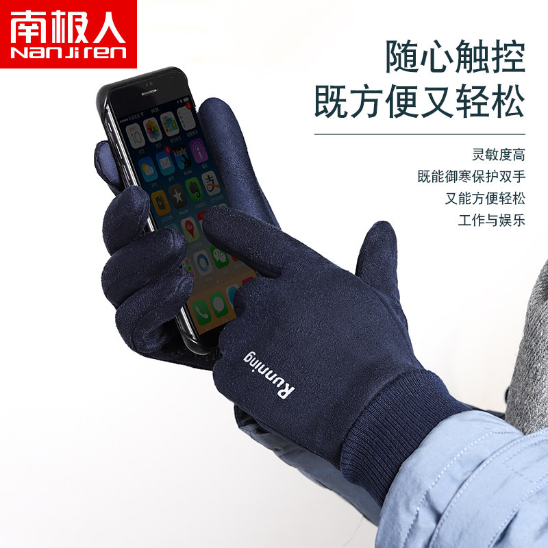 南极人麂皮绒手套男秋冬季骑行运动冬天女防滑保暖触屏加绒开车A