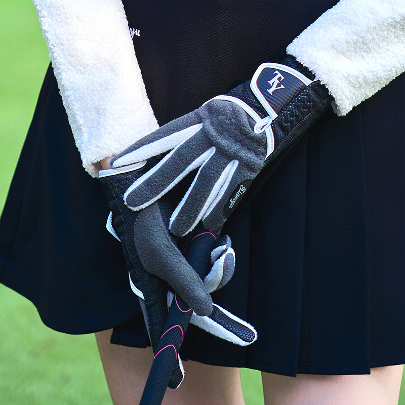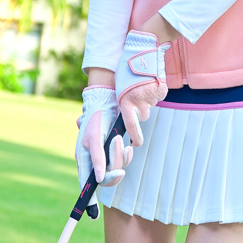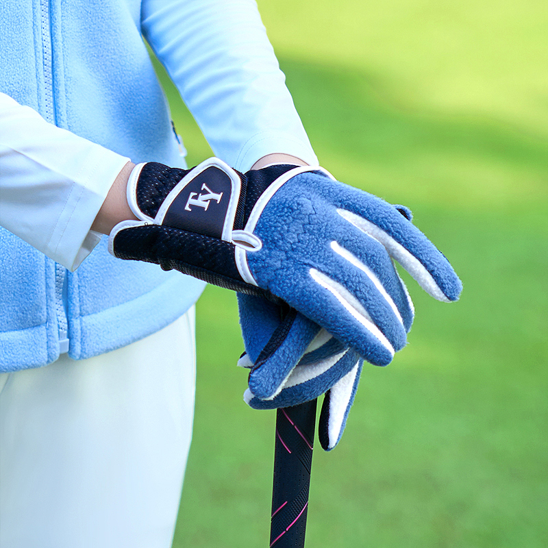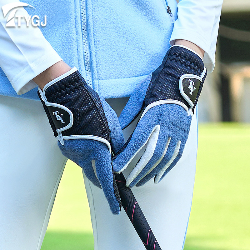 高尔夫手套女士保暖可触屏韩版手套摇粒绒防滑手套 左右双手1双装