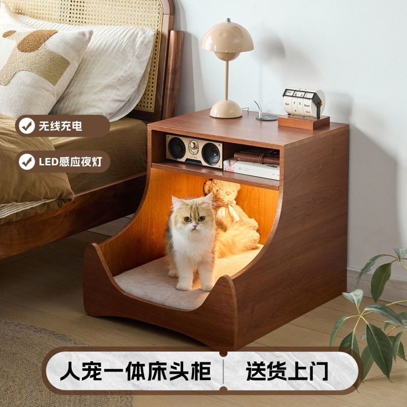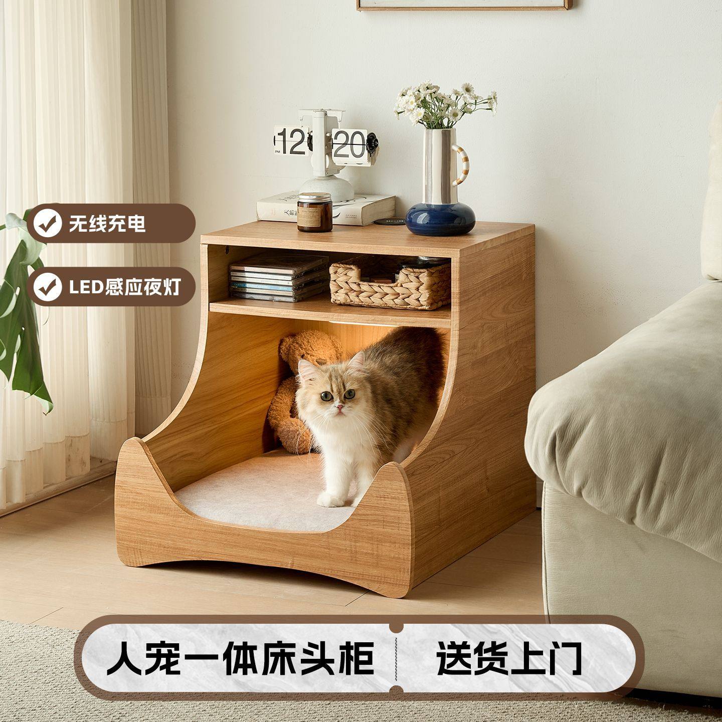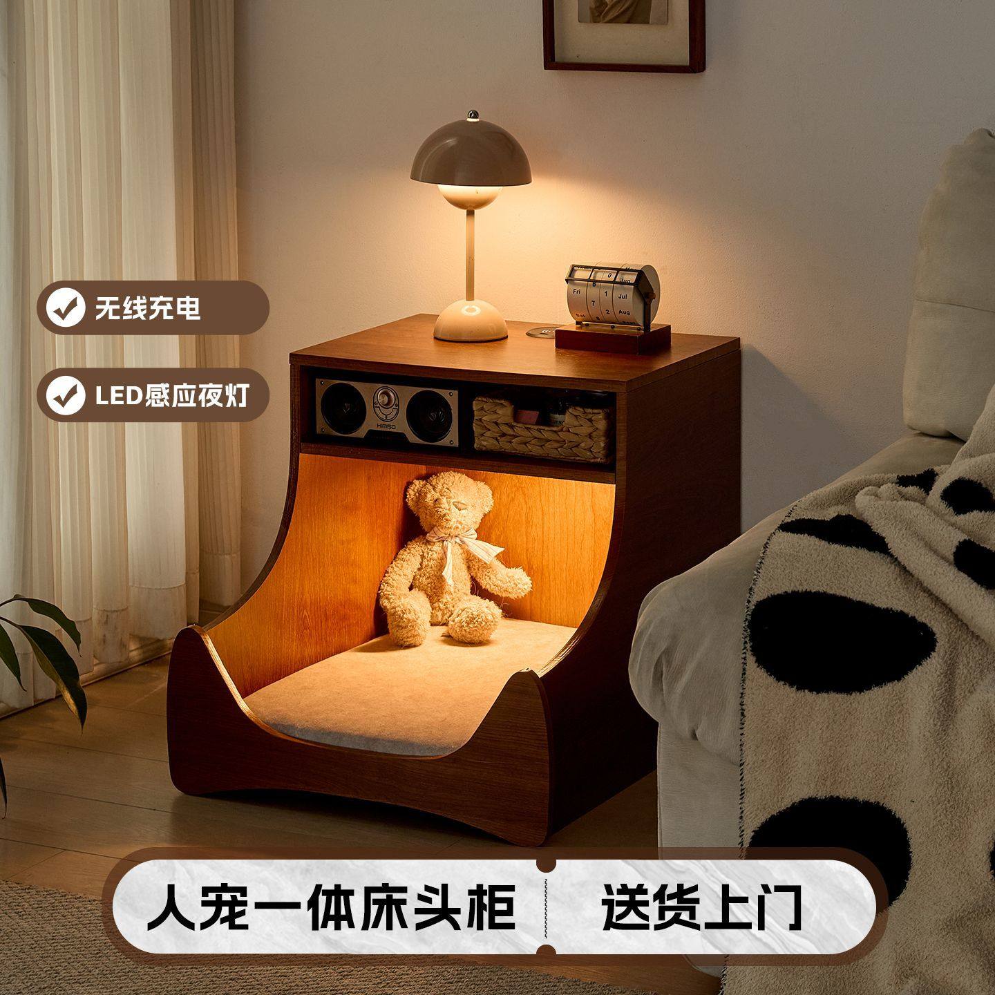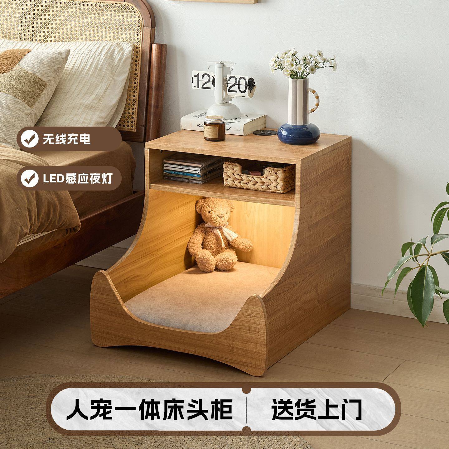 猫狗窝人宠一体床头柜家用卧室无线充电感应灯储物柜宠物房间布置
