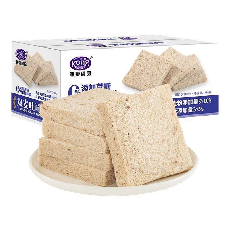 港荣双麦吐司面包460g低脂无添加蔗糖手撕面包早餐零食品
