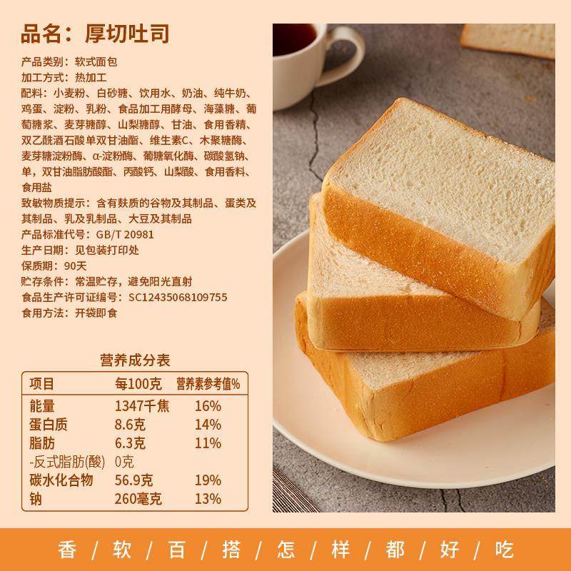 厚切吐司面包整箱早餐牛乳手撕厚切片代餐小零食小吃休闲食品营养