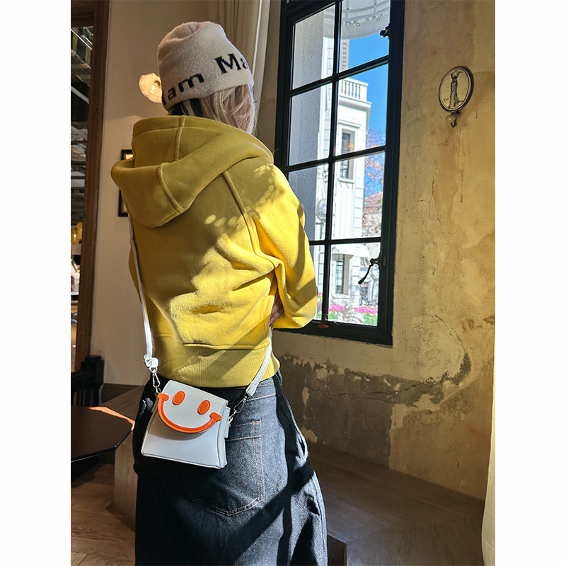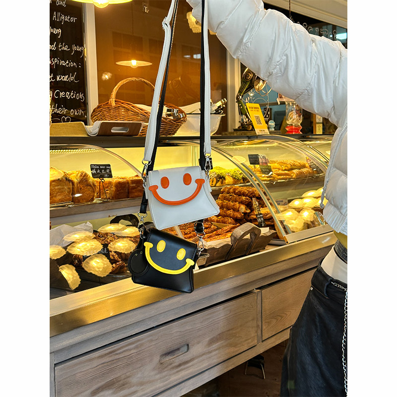妖精的口袋撞色笑脸迷你斜挎包女25新款百搭可爱设计感小众单肩包