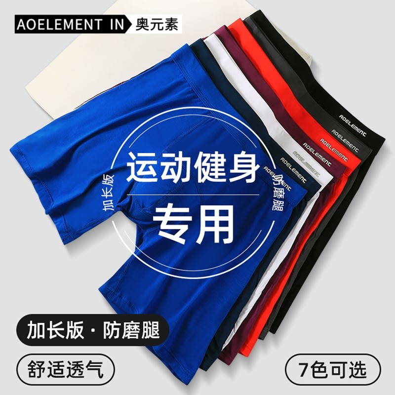 男士防磨腿运动加长腿内裤五分裤莫代尔平角裤长款速干四角裤红色