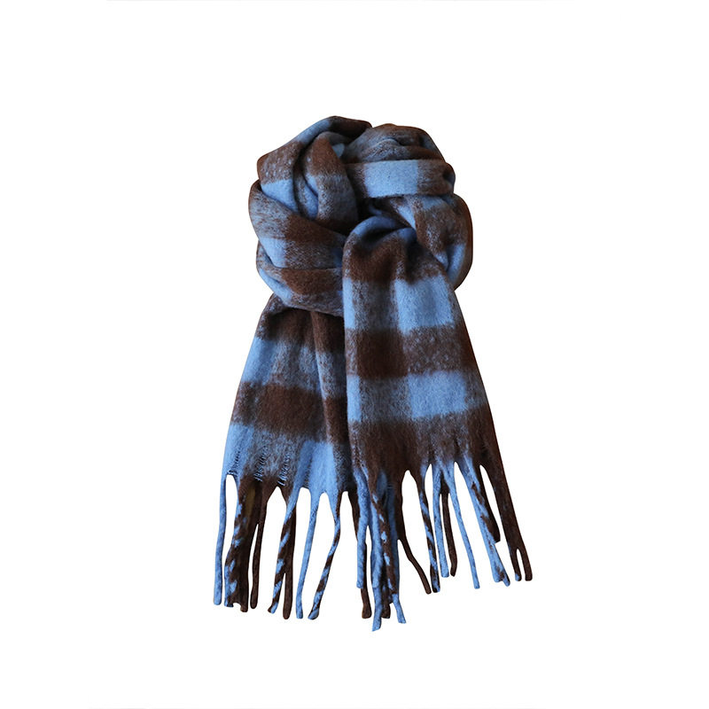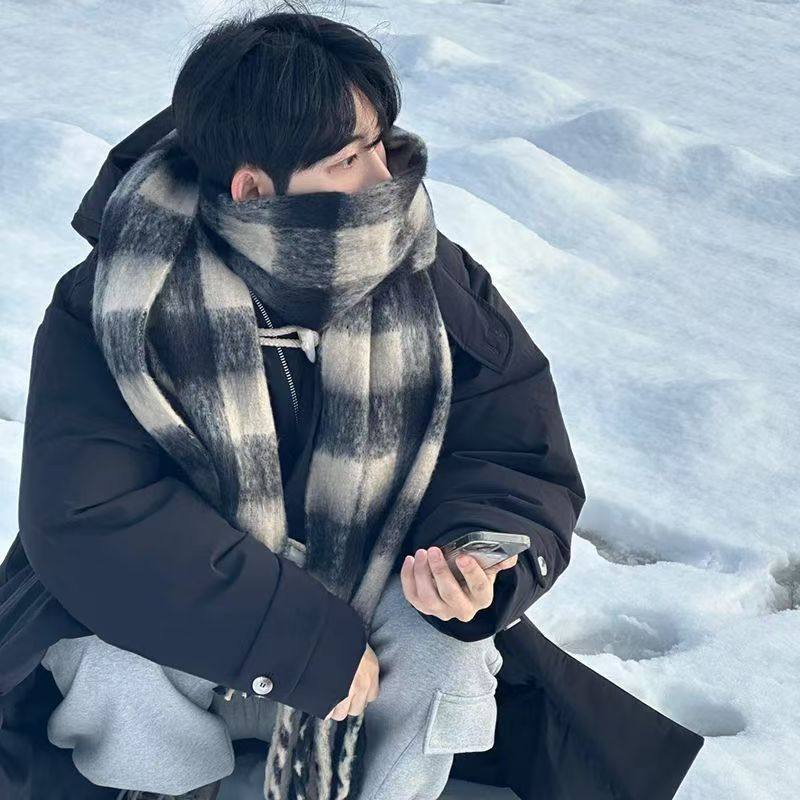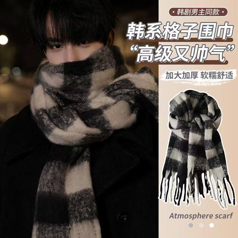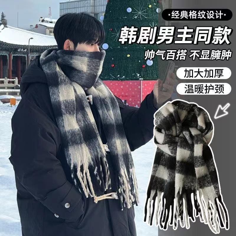 韩剧男主同款围巾感马海毛黑白格子围巾大披肩保暖加厚围脖