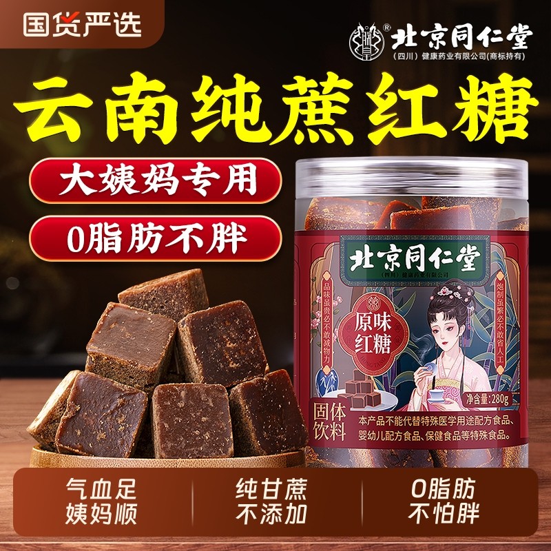 北京同仁堂红糖块红糖姜茶大姨妈单独小包装补气黑糖姜枣纯正原味