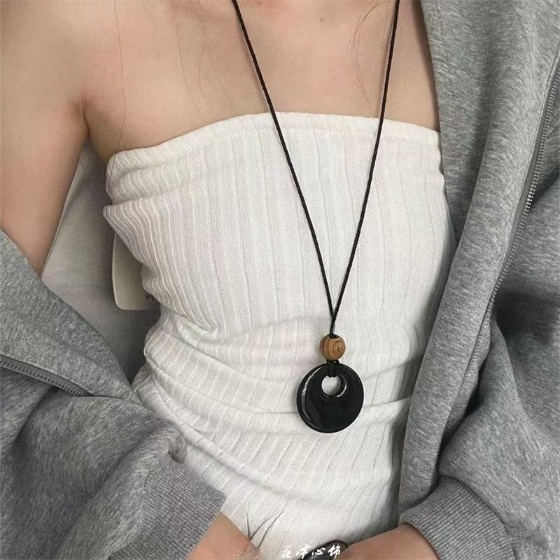 黄金吊坠挂绳黑色项链绳女红黑绳小皮绳挂件蜡皮绳子颈链不易掉色