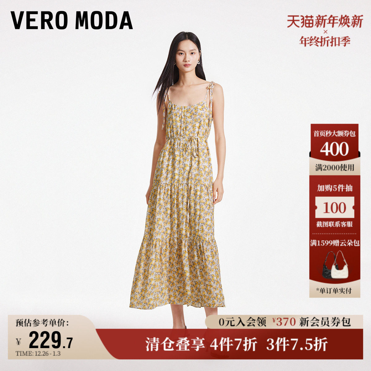 Vero Moda奥莱吊带连衣裙秋冬新款系带直筒长裙优雅度假裙子流行