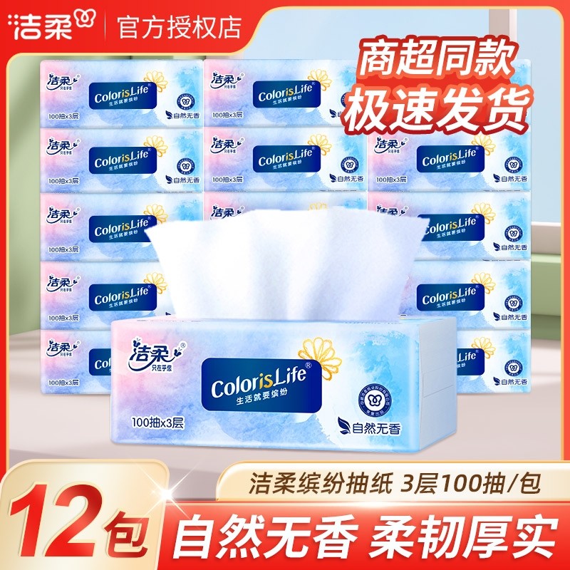 洁柔缤纷抽纸整箱装三层加厚可湿水擦手纸卫生纸家庭办公室囤货装