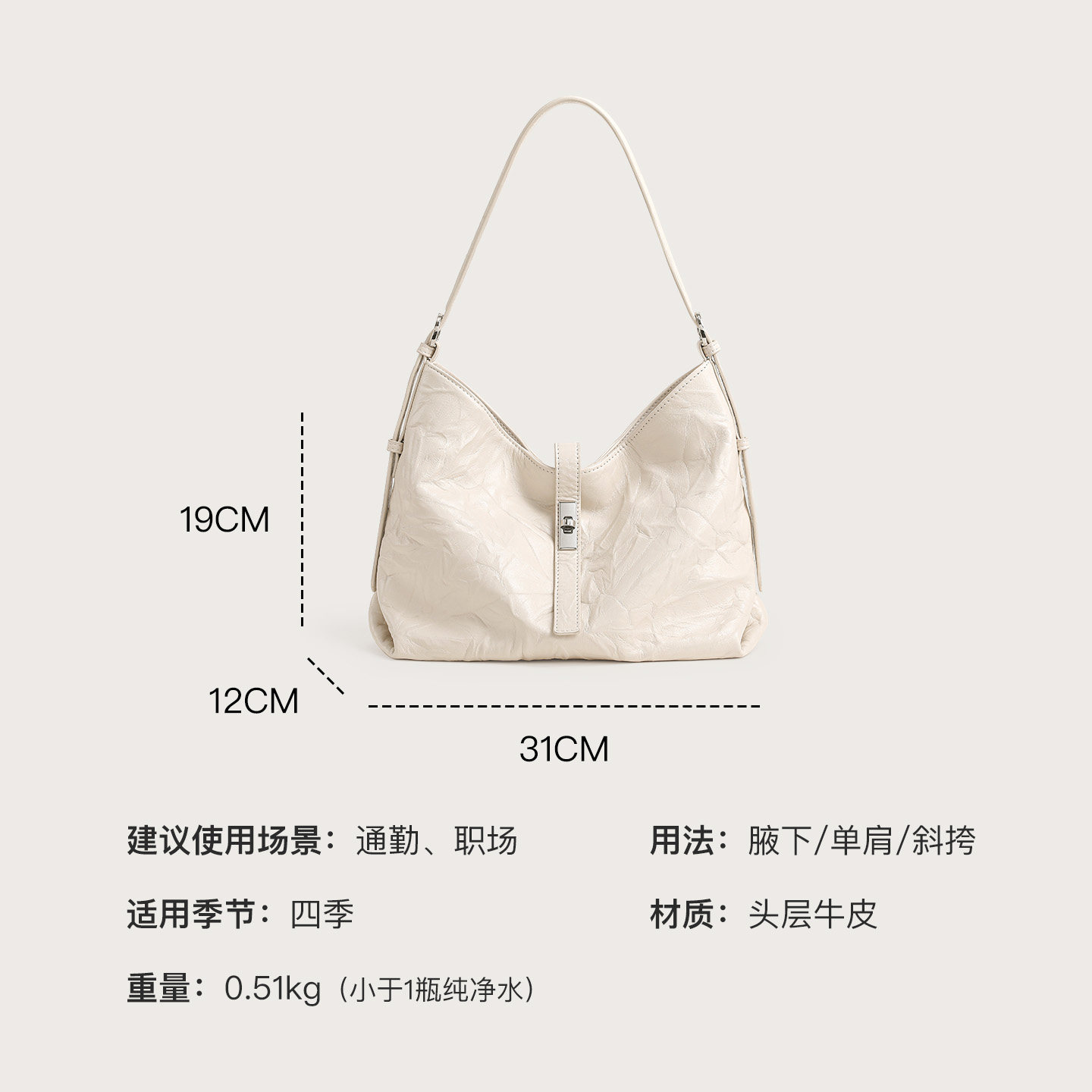 妙迪真皮hobo腋下包新款头层牛皮通勤大容量托特包女款单肩斜挎包