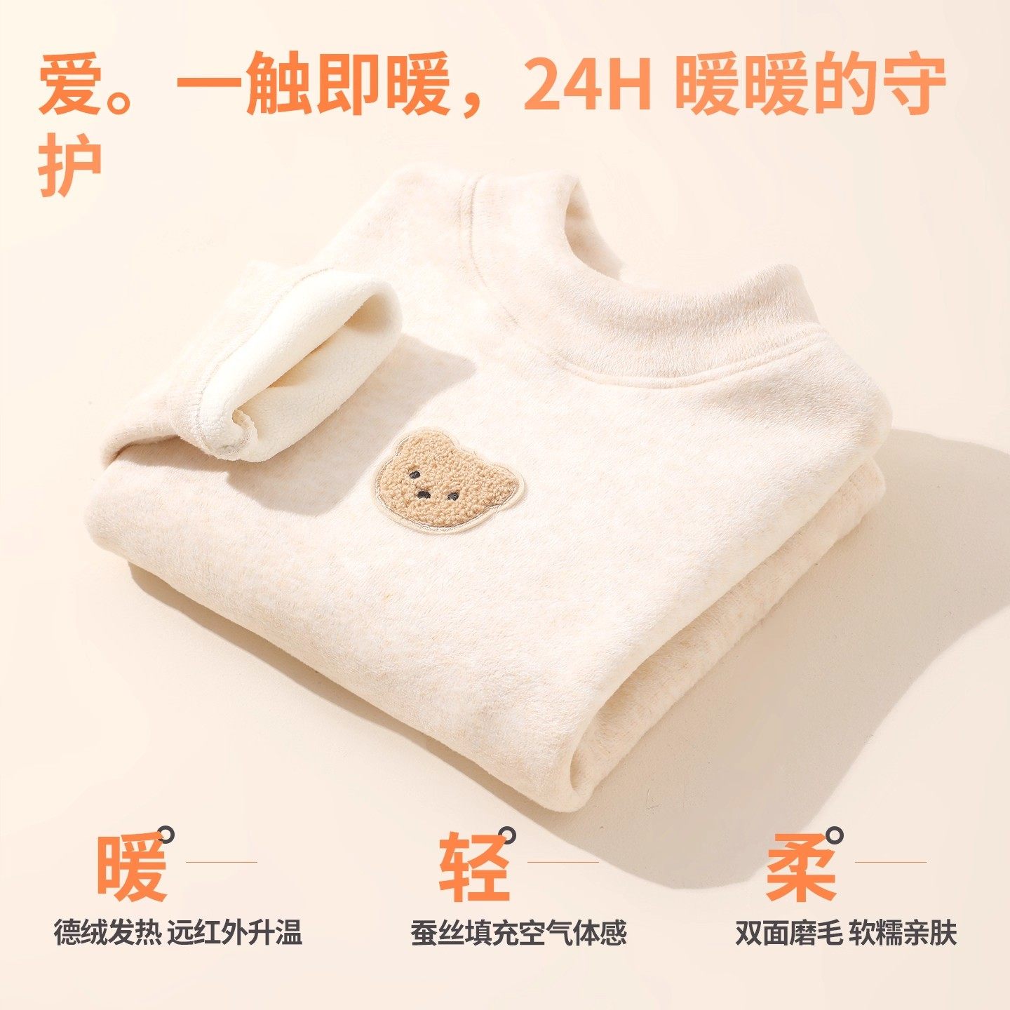 女童儿童打底衫加绒加厚卫衣羊毛蚕丝打底秋冬季保暖宝宝上衣磨毛
