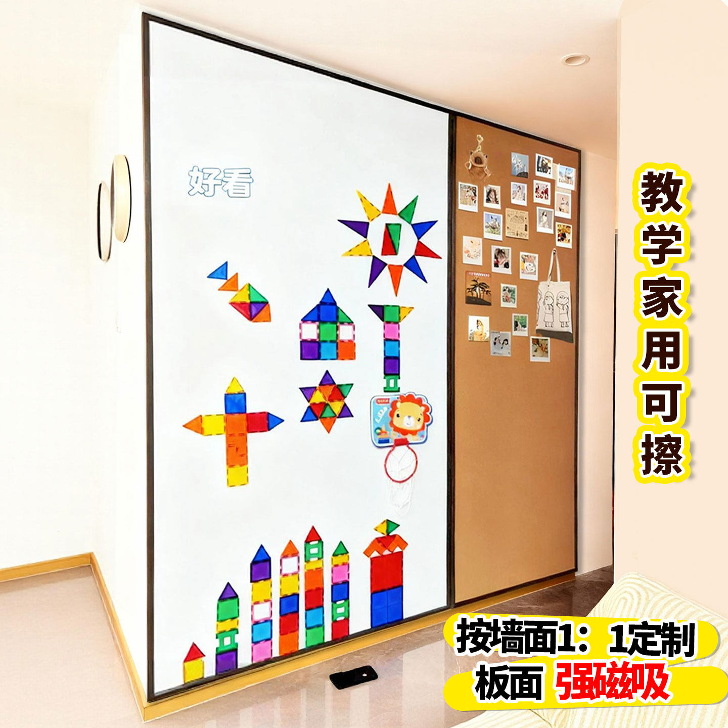 齐富实木框哑光白板墙挂式办公学习白板墙贴磁吸板免打孔装饰简约ins风学生装饰板卧室玄关入户门家用展示板