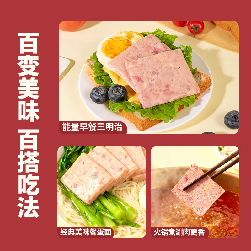 肉敢当纯黑猪午餐肉软罐头单独包装即食火腿儿童早餐三明治火锅