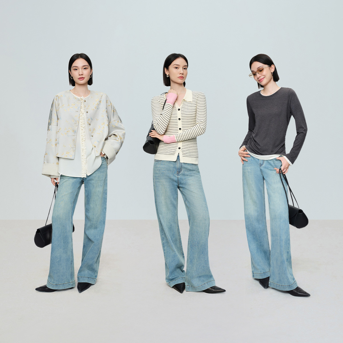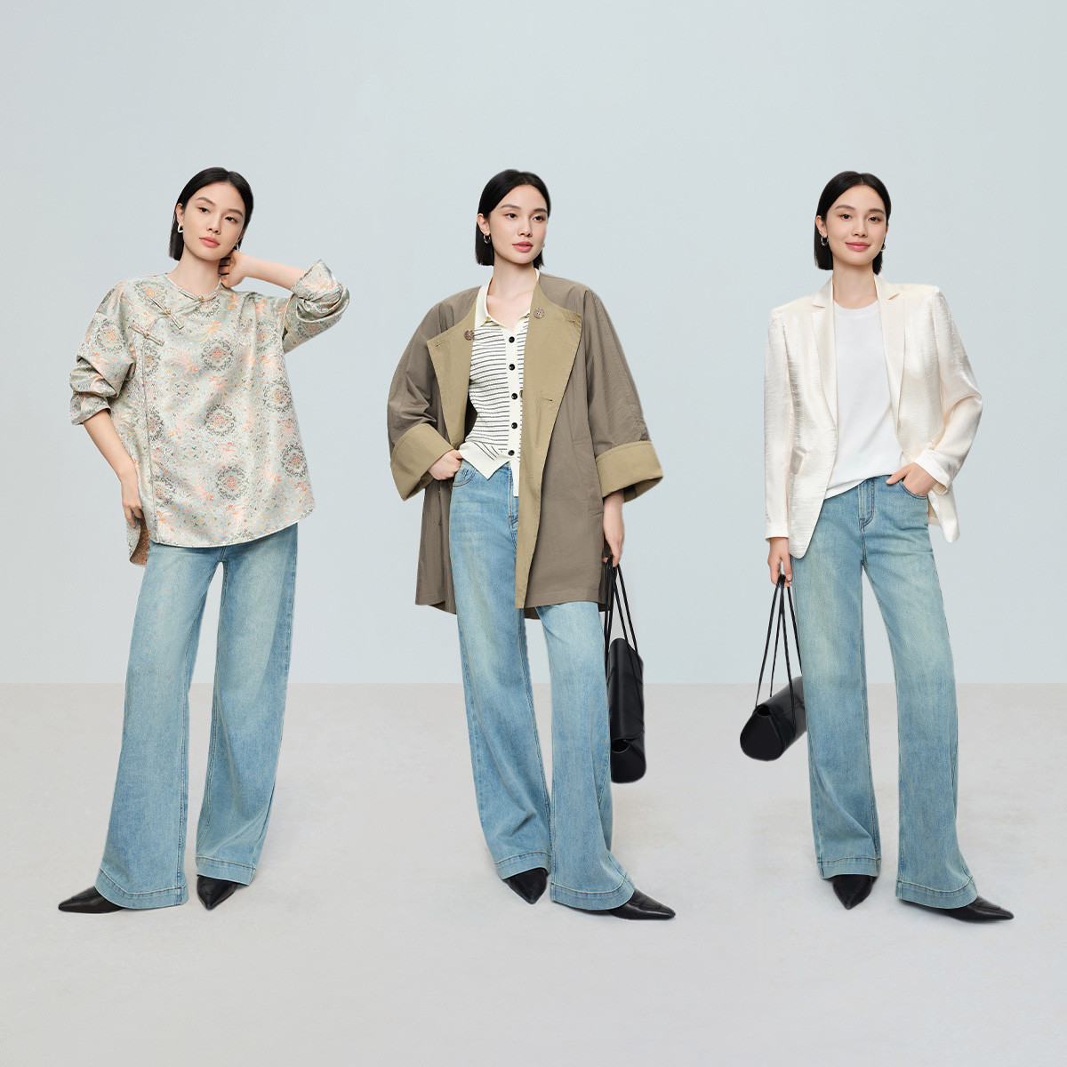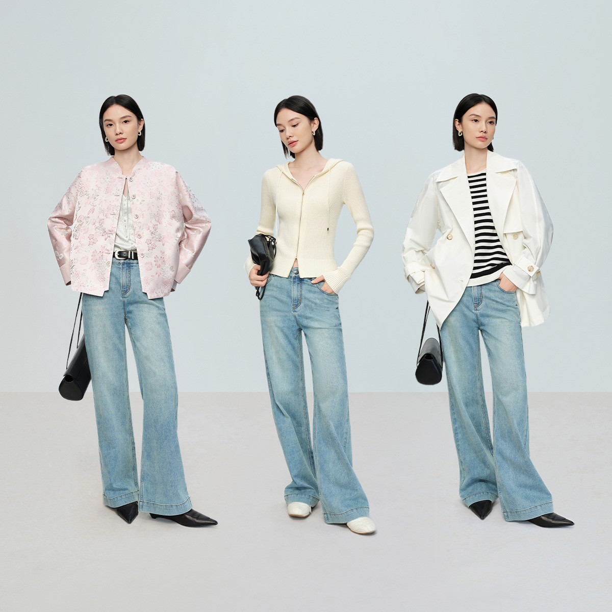 【小直筒牛仔裤】naivee26春新款中低腰裤子水洗牛仔棉浅蓝色