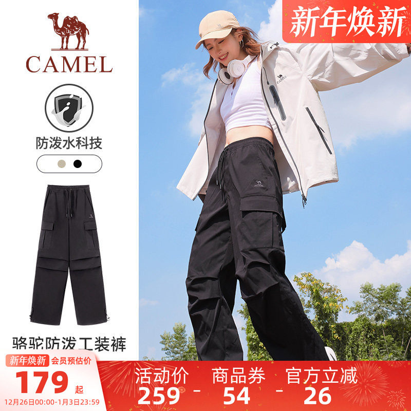 【防泼水】骆驼运动工装裤女冬季加绒休闲裤户外直筒徒步登山裤