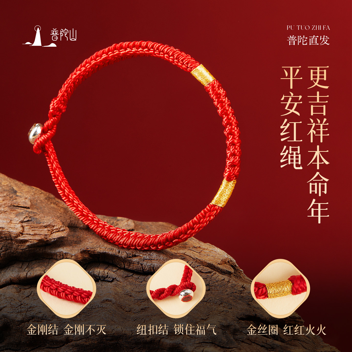 普陀山2026年犯太符手链红绳编织绳男女本命年化解手绳马年吉祥物