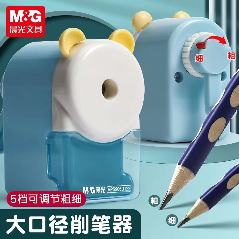 晨光削笔机大口径卷笔刀手摇转笔器铅笔削笔刀小学生儿童专用加粗杆洞洞笔削笔器多功能大孔粗细可调节大容量