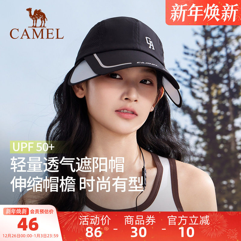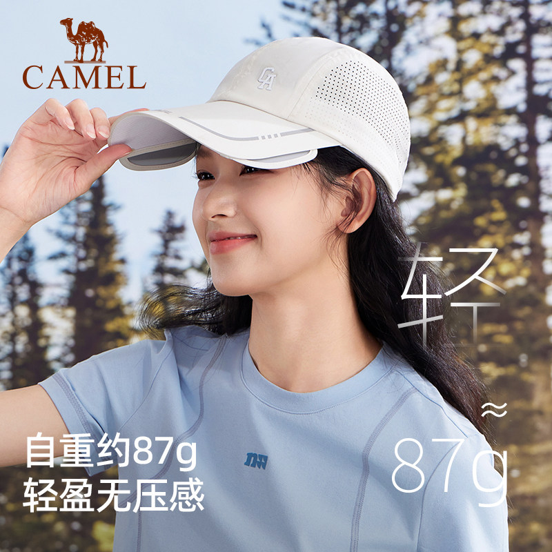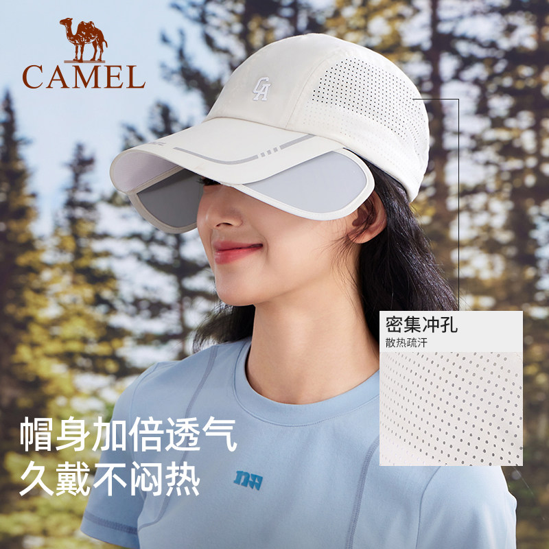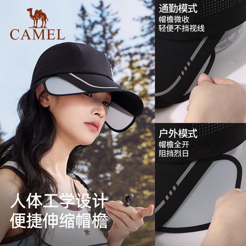 骆驼伸缩帽檐防晒棒球帽防紫外线夏季2025年新款女遮阳帽鸭舌帽子