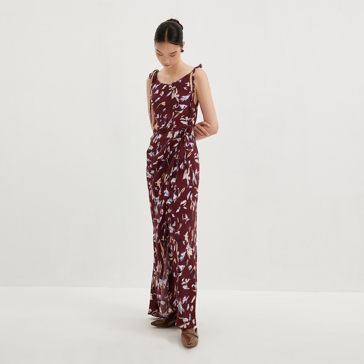 MESUX米岫新品女装印花调节腰无袖长款礼服裙MMFUO202