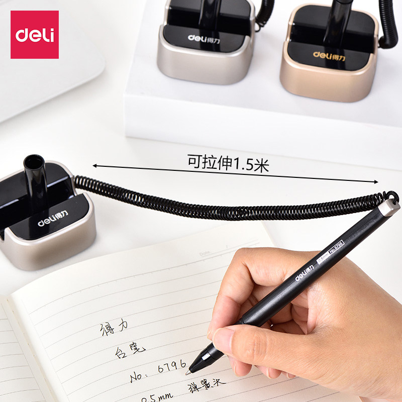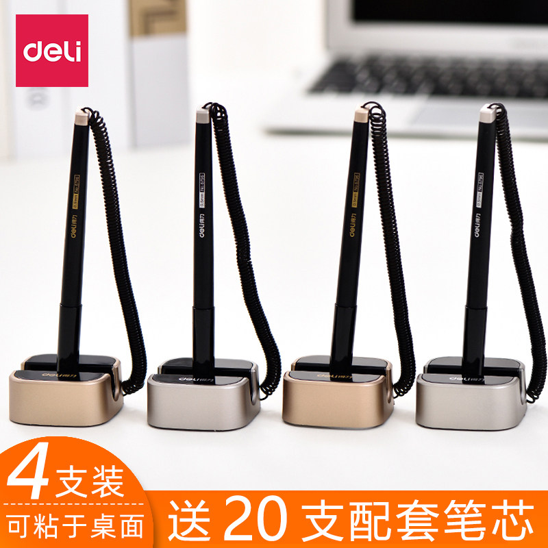 4支装得力桌面台笔文具6796酒店银行前台柜台固定台笔商务办公笔0.5mm中性台笔碳素黑色签字笔粘桌笔广告定制