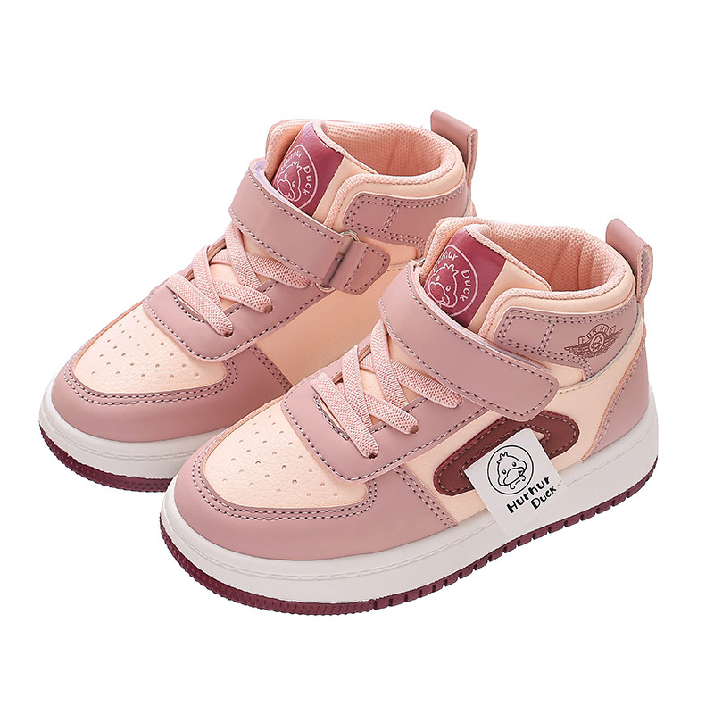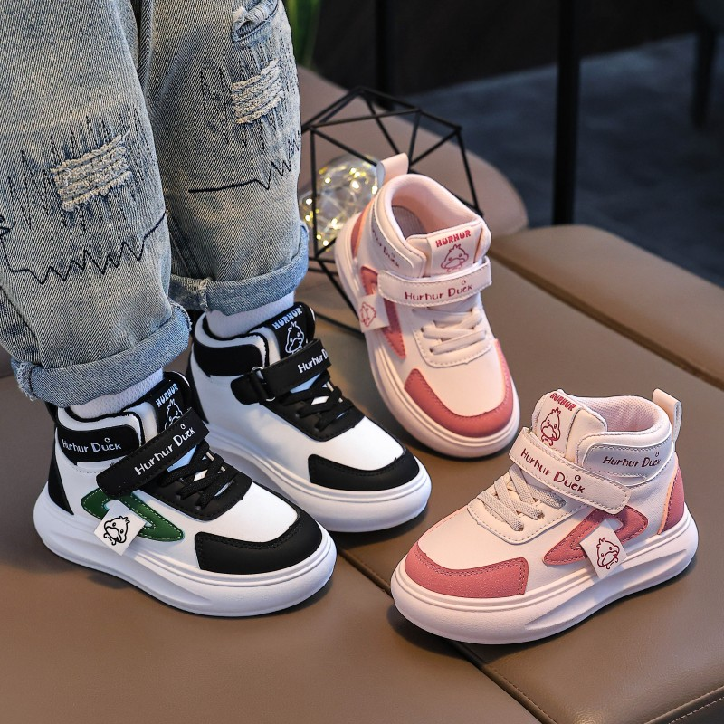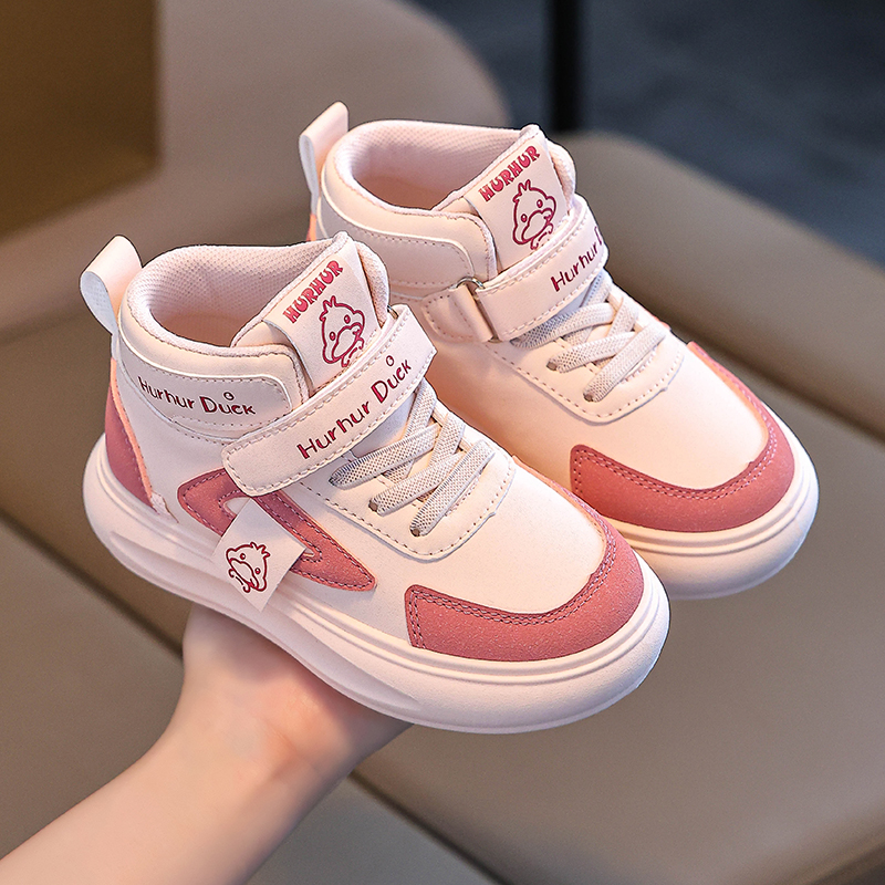 小黄鸭童鞋春秋新款女童鞋子学生运动鞋男童皮面高帮儿童板鞋防滑