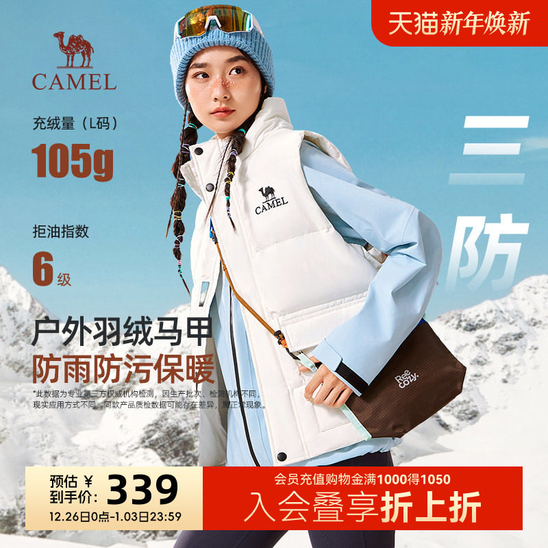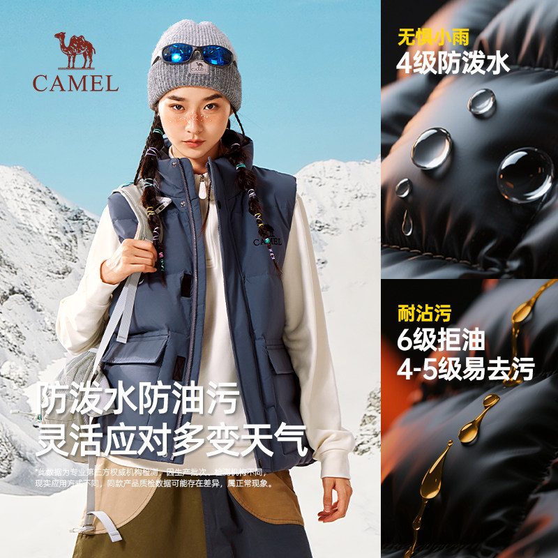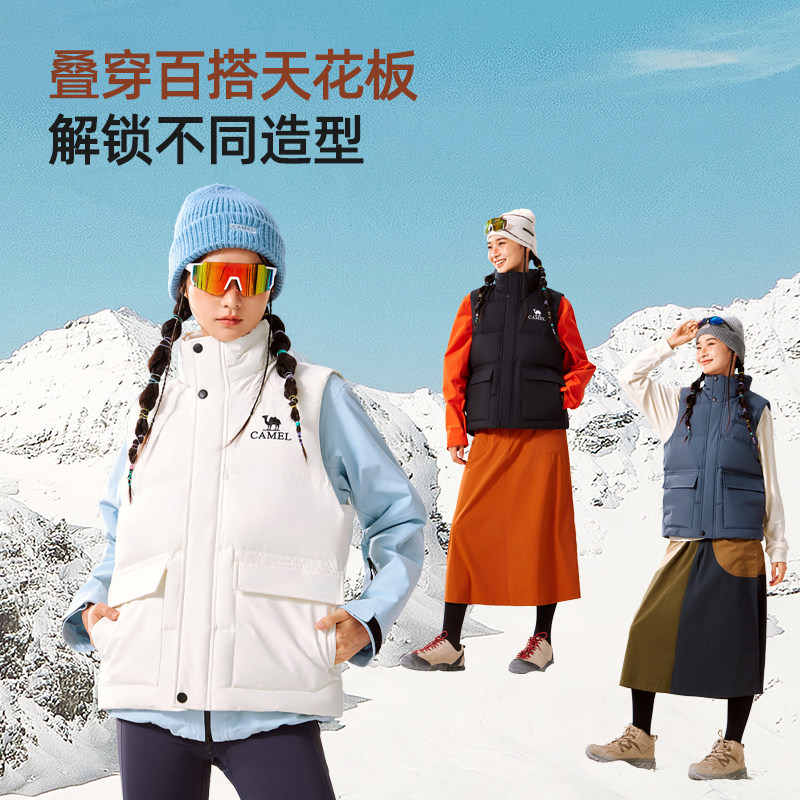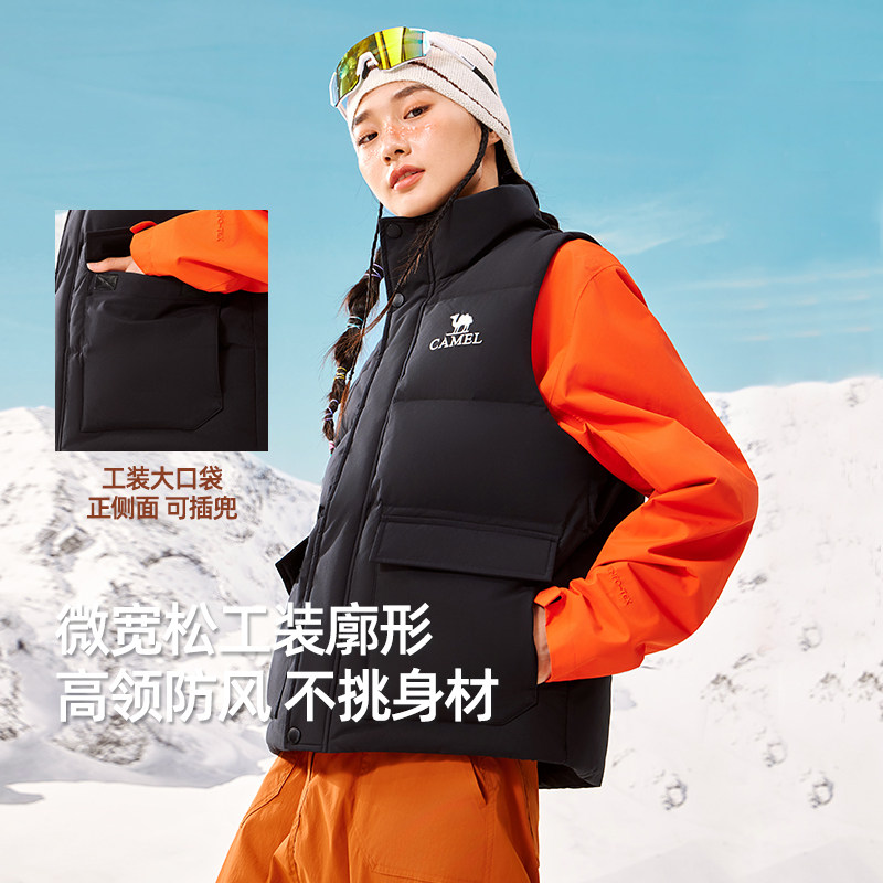 骆驼羽绒马甲女款秋冬季2025新款潮牌情侣外穿防水立领背心羽绒服