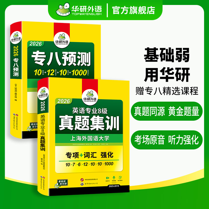 华研外语英语专八真题集训专八预测卷备考2026英语专业八级历年真题考试卷听力阅读理解写作文翻译改错词汇预测模拟专项训练tem8级