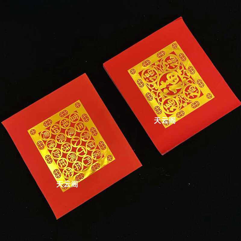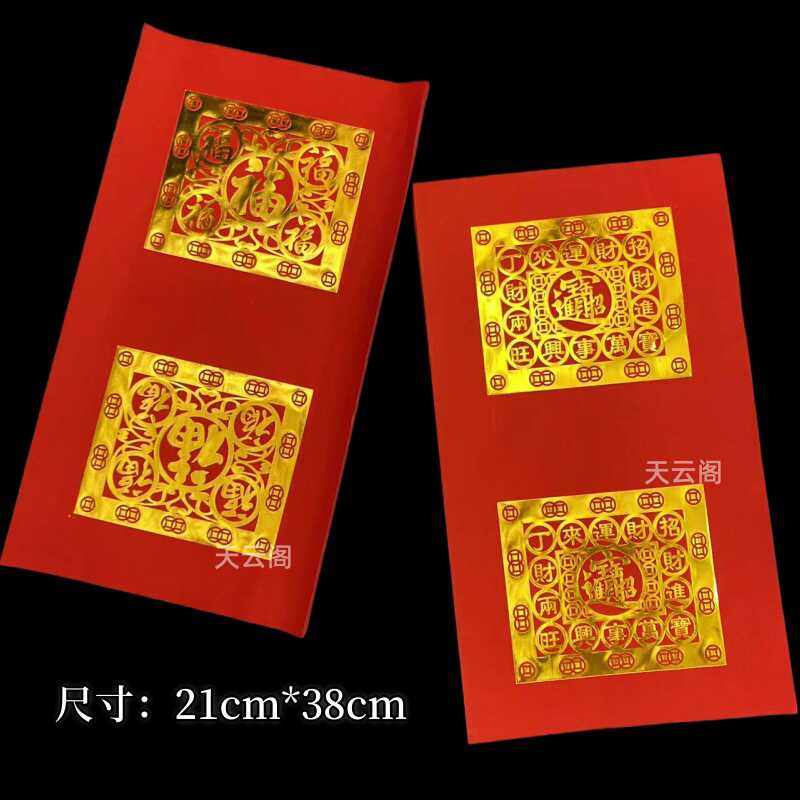 潮汕中秋烫金系列红色双联福钱纸38*21cm折塔元宝折花篮莲花用品