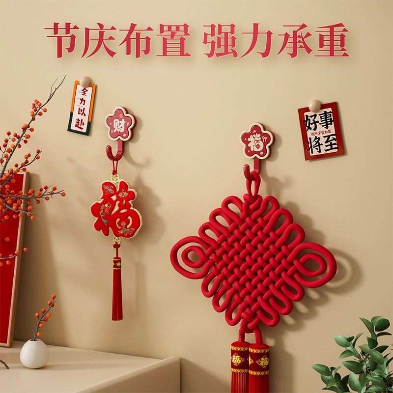 新年喜庆挂钩免打孔强力承重粘胶无痕红色乔迁新居强力粘钩布置