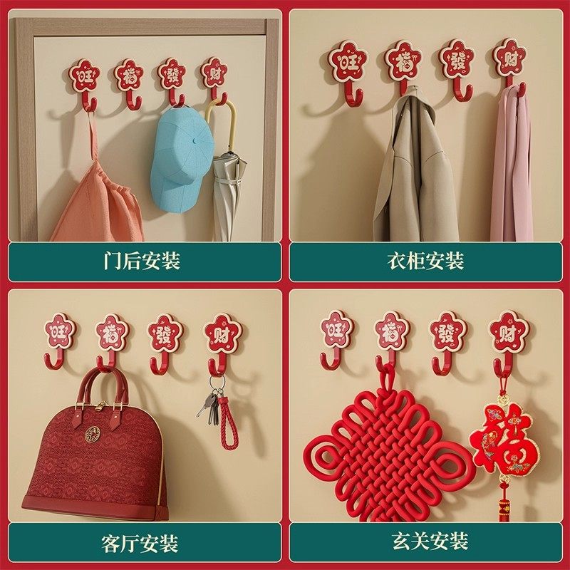 中国红色福字挂钩新年粘钩打孔无痕结婚钩子粘胶喜庆墙上宿舍强力