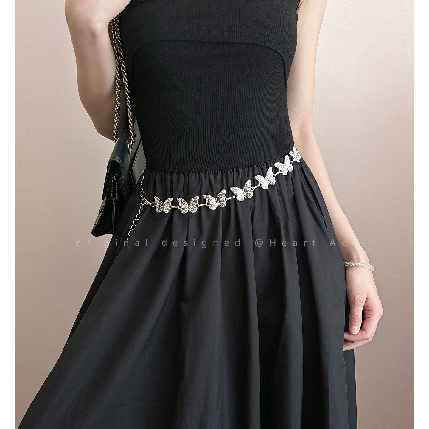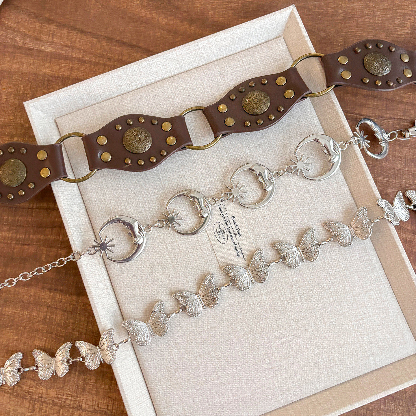 美式复古棕色铆钉蝴蝶腰带女2025新款配牛仔裤皮带百搭连衣裙腰链