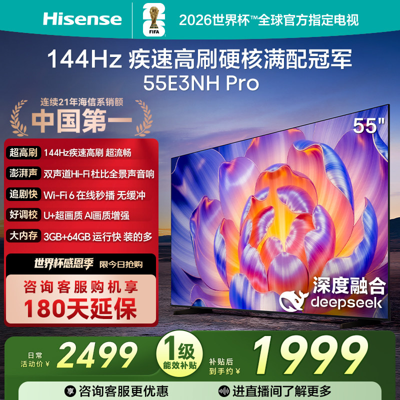 海信电视55E3NH Pro 55英寸 144Hz高刷 大内存 以旧换新补贴电视