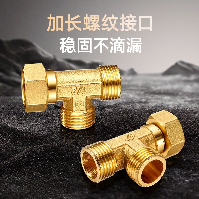加厚铜三通4分铜配件活接三通燃气管热水器小厨宝龙头一分二路