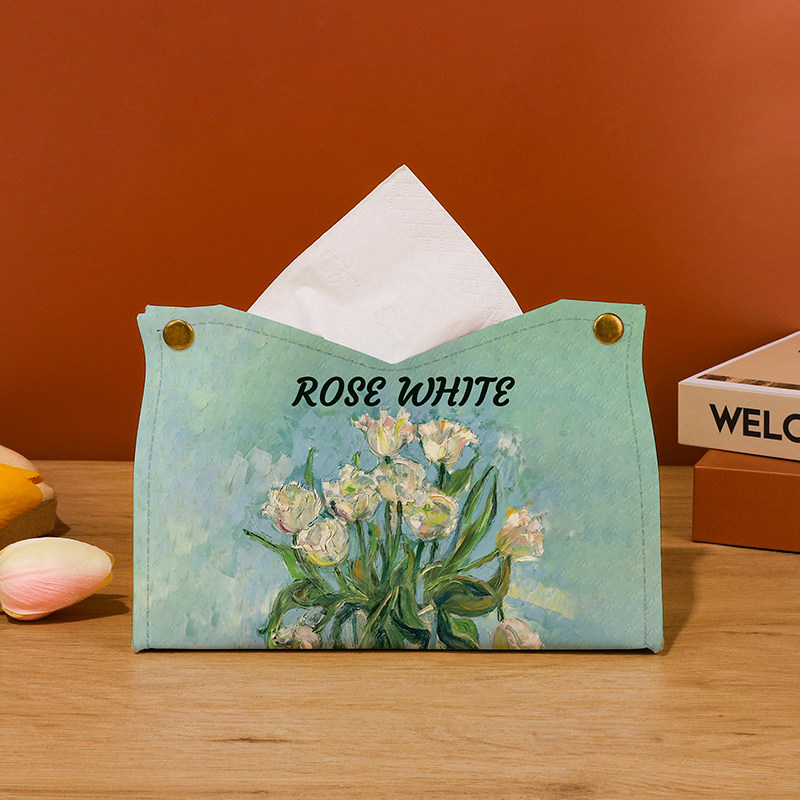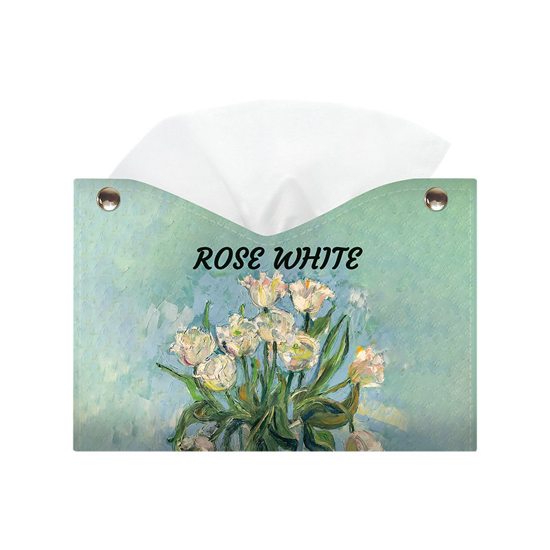 轻奢风高级感油画玫瑰抽纸盒收纳客厅车载桌面纸抽袋创意餐纸巾盒