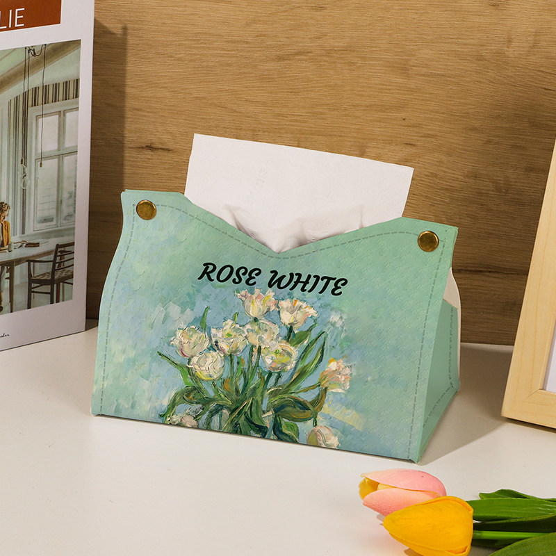 梵高油画玫瑰纸抽盒轻奢风家用客厅卫生间车载卷抽纸巾盒创意收纳