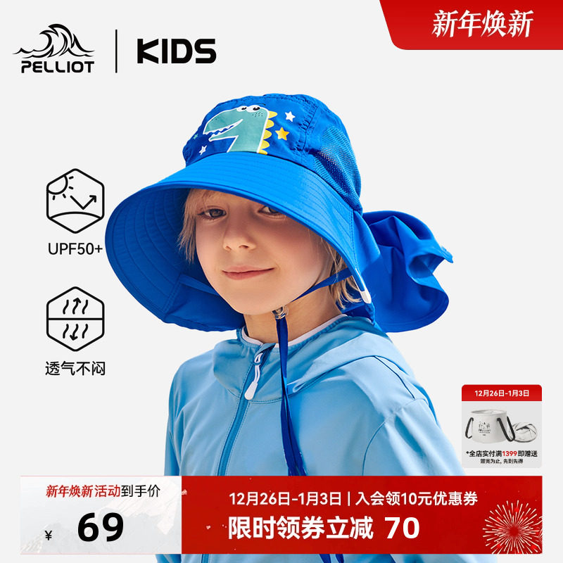 伯希和儿童防晒帽子男女童夏薄款渔夫帽防紫外线太阳帽宝宝遮阳帽