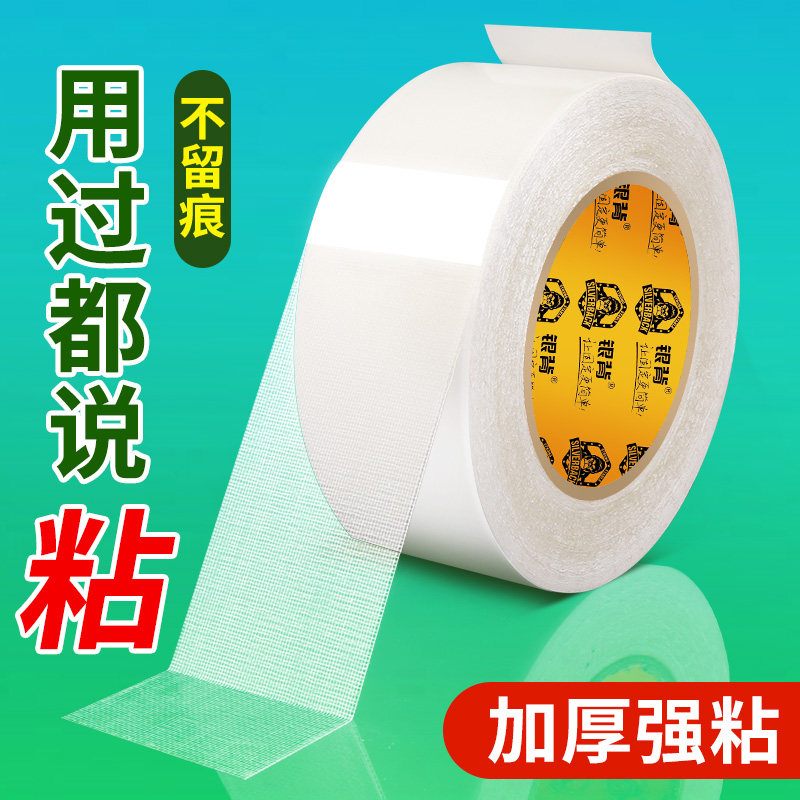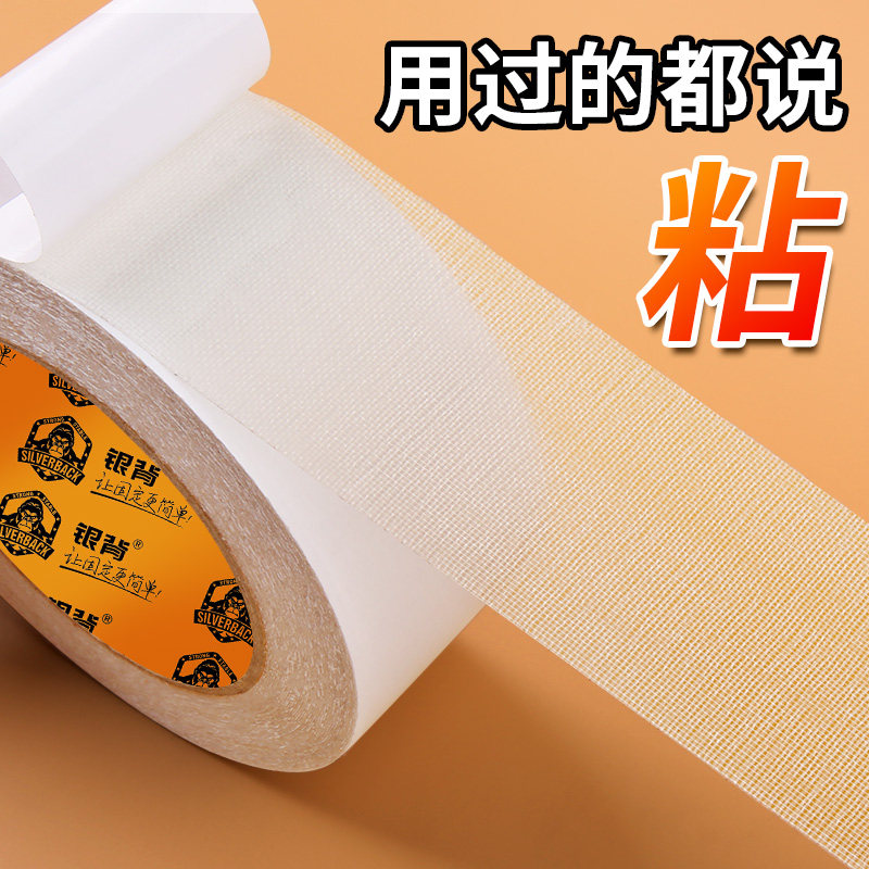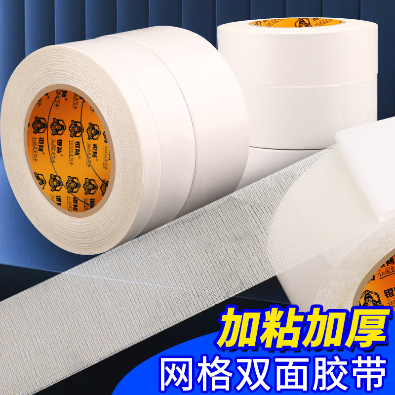 布基胶带网格纤维双面胶高粘度无痕透明加厚强力固定粘地毯胶专用胶网状粘贴墙面奖状海报春联不留痕可撕防水