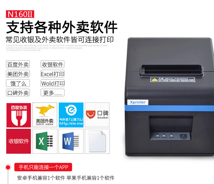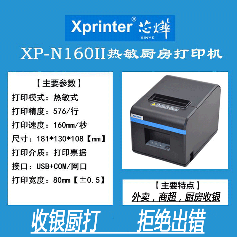 芯烨XP-N160II热敏打印机80mm美团网口厨房小票机A160M自动切纸