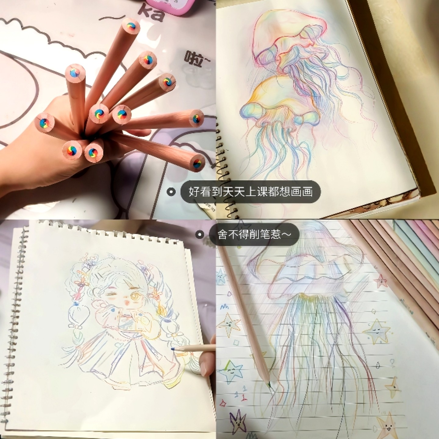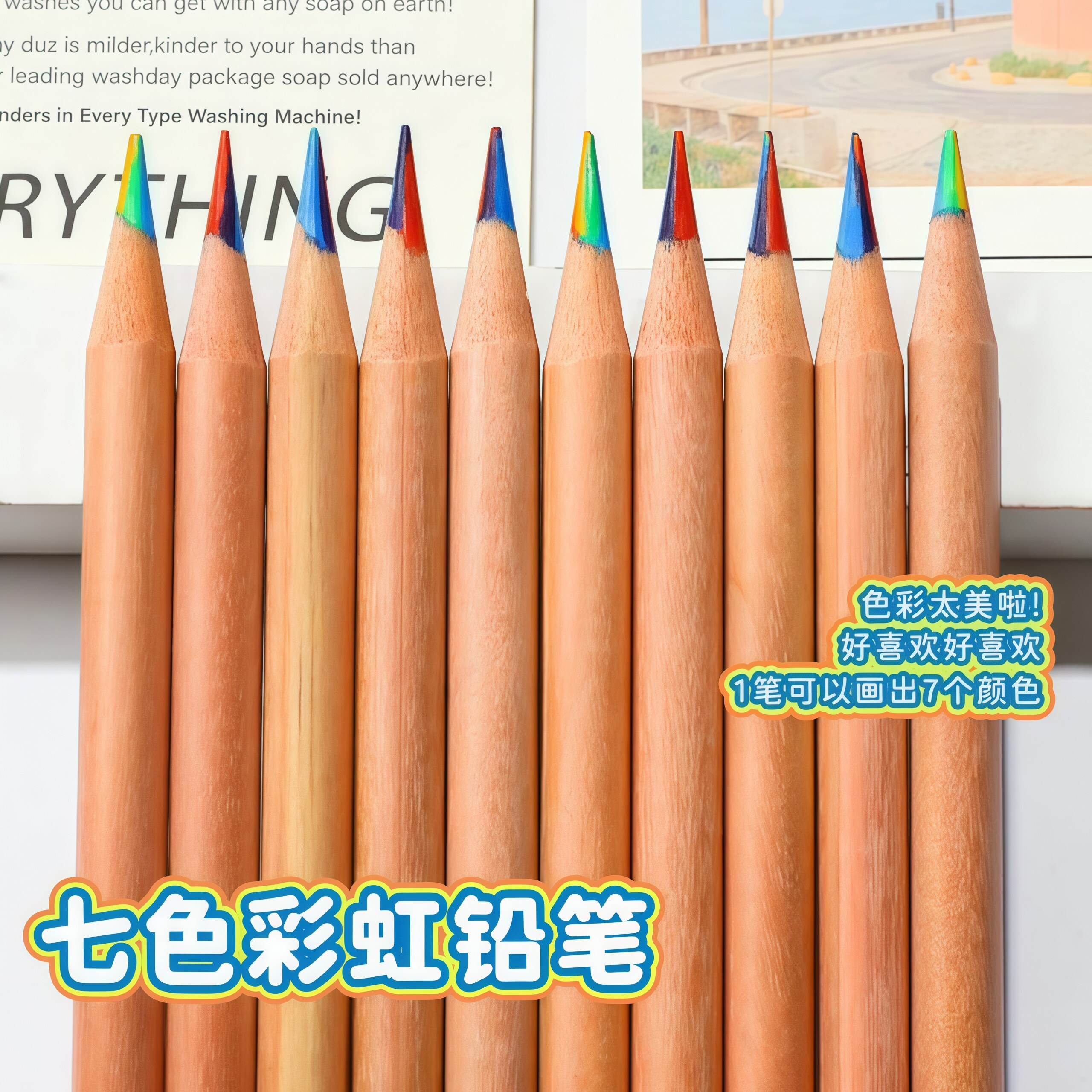 艾黎 七色彩虹铅笔彩色笔芯diy儿童手绘渐变彩虹笔混色一笔多色小学生无毒幼儿园美术绘画专用填色魔幻画笔