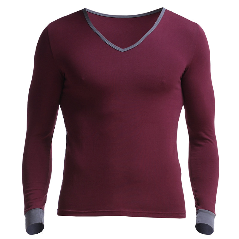 男士基础内衣单件上衣修身棉质毛衫保暖大V领秋衣薄款长袖打底衫