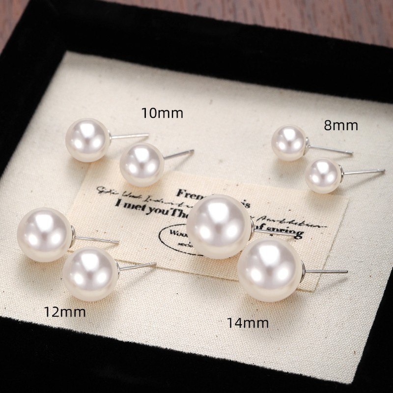 高光正圆珍珠耳钉耳饰女养耳洞人造气质高级感耳环耳坠七夕氧化