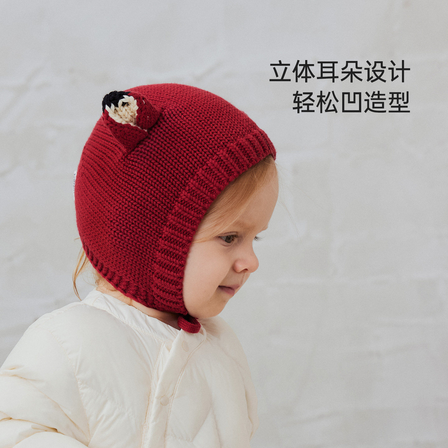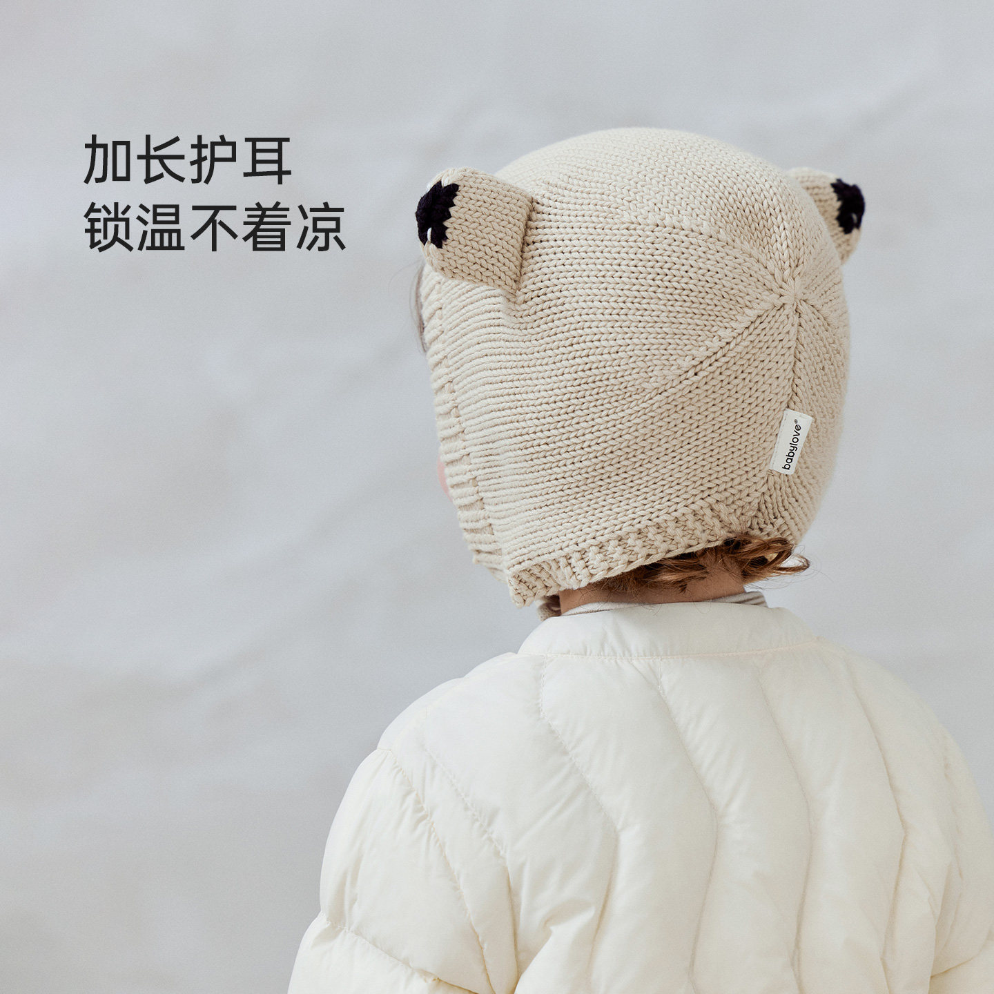 babylove宝宝毛线帽冬季纯棉保暖针织帽子婴儿纯色新年防风护耳帽