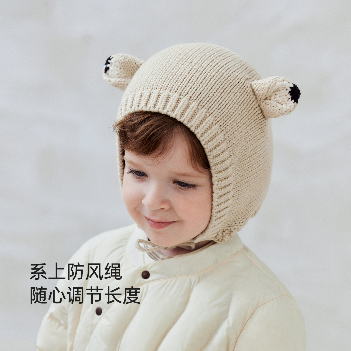 hugz儿童帽子围巾秋冬户外男孩女孩保暖针织毛线帽护耳防风熊仔帽